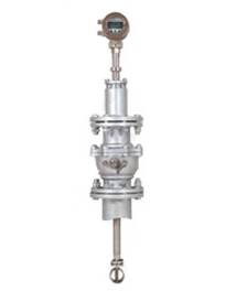 將渦街測量頭插入管道特定位置,通過測量該位置的局部流量,根據(jù)管道截面流速分布關系,計算出管道內(nèi)平均流速值。它由轉(zhuǎn)換器、插入桿組件、球閥(根據(jù)需求配 )、安裝短管(ф100)、渦街測量頭等組成。