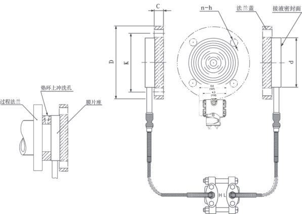 :接液蓋材料代號(hào)B,配用除316L鋼以外的遠(yuǎn)傳膜片。