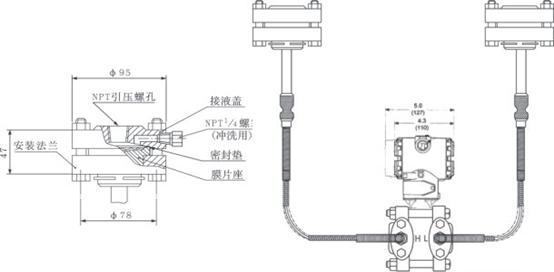 ⑤ DP型雙法蘭液位變送器兩側(cè)的毛細(xì)管zui大長(zhǎng)度為7.5米,兩側(cè)長(zhǎng)度差為4.5米。